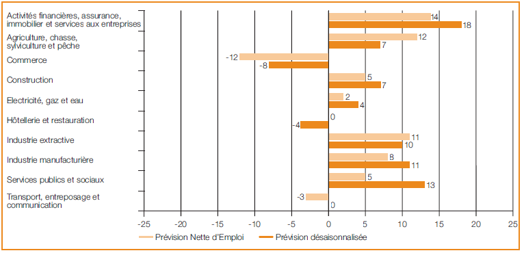 En termes de prévisions nettes d’emploi, l’étude estime qu’elle sera de l’ordre de +4% (contre -1% au trimestre dernier, qui était le plus mauvais résultat jamais observé depuis le lancement de l’étude).